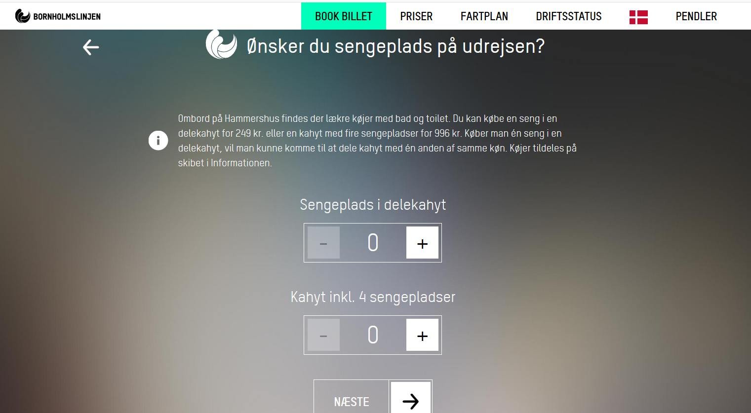 Wenn man Køge-Rønne bucht, kann man auch eine Kabine (im Internet) buchen, siehe Bild unten; bei Færgen seinerzeit konnte man des auf dem Schiff an der Information erledigen (falls man dort jmd getroffen hat).