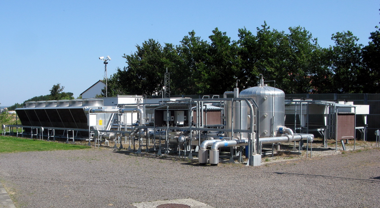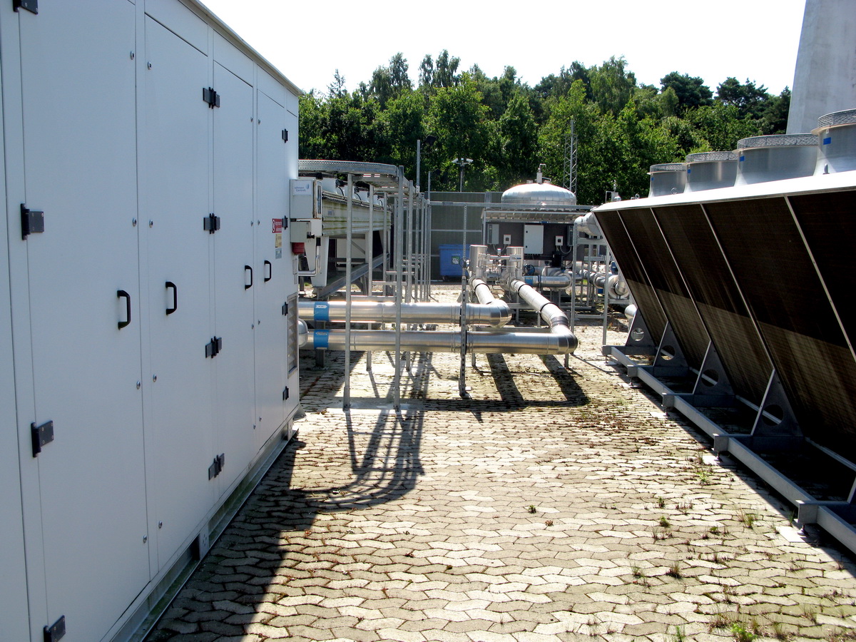 Auf der anderen Seite, von der Straße kaum zu sehen, findet sich die riesige Kühlanlage.