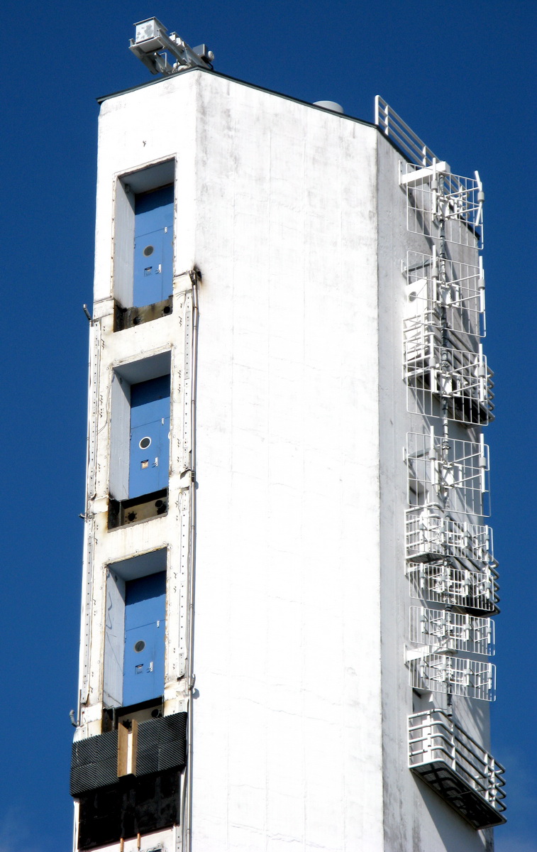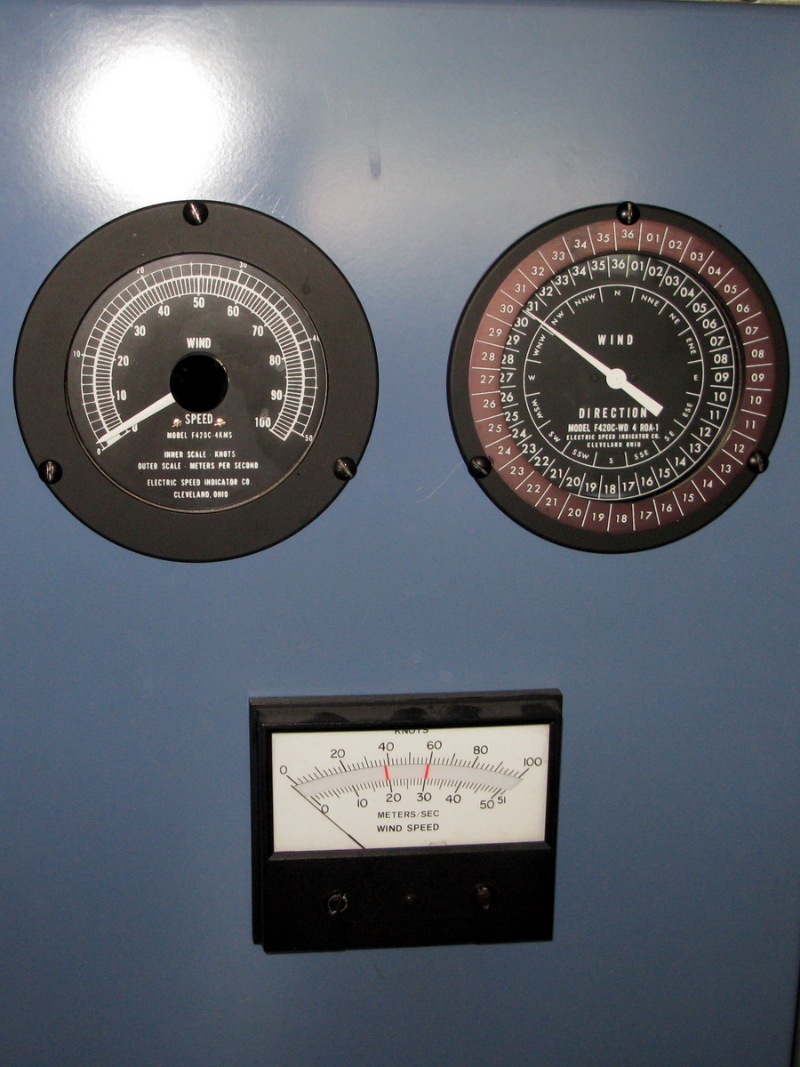 Weiter geht es dann zum Sockel des Betonturms, Windstärke und Windrichtung wurden jedenfalls auch gemessen, vielleicht um bei Arbeiten im Außenbereich gewappnet zu sein. Die Antennen waren eigentlich wetterfest verpackt und so oft dürfte sich doch keiner oben aufgehalten haben....
