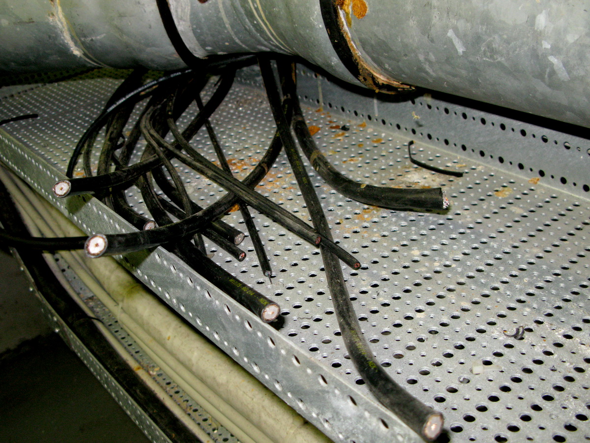 Ganz nach oben in den Außenbereich kommt man leider nicht, es führt auch nur eine Leiter die letzten Meter empor, auch hier kann man gut sehen, wie damals riesige Kabelstränge durch die Kanäle nach oben geführt worden waren.