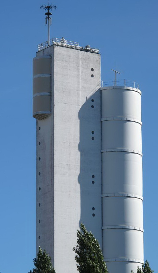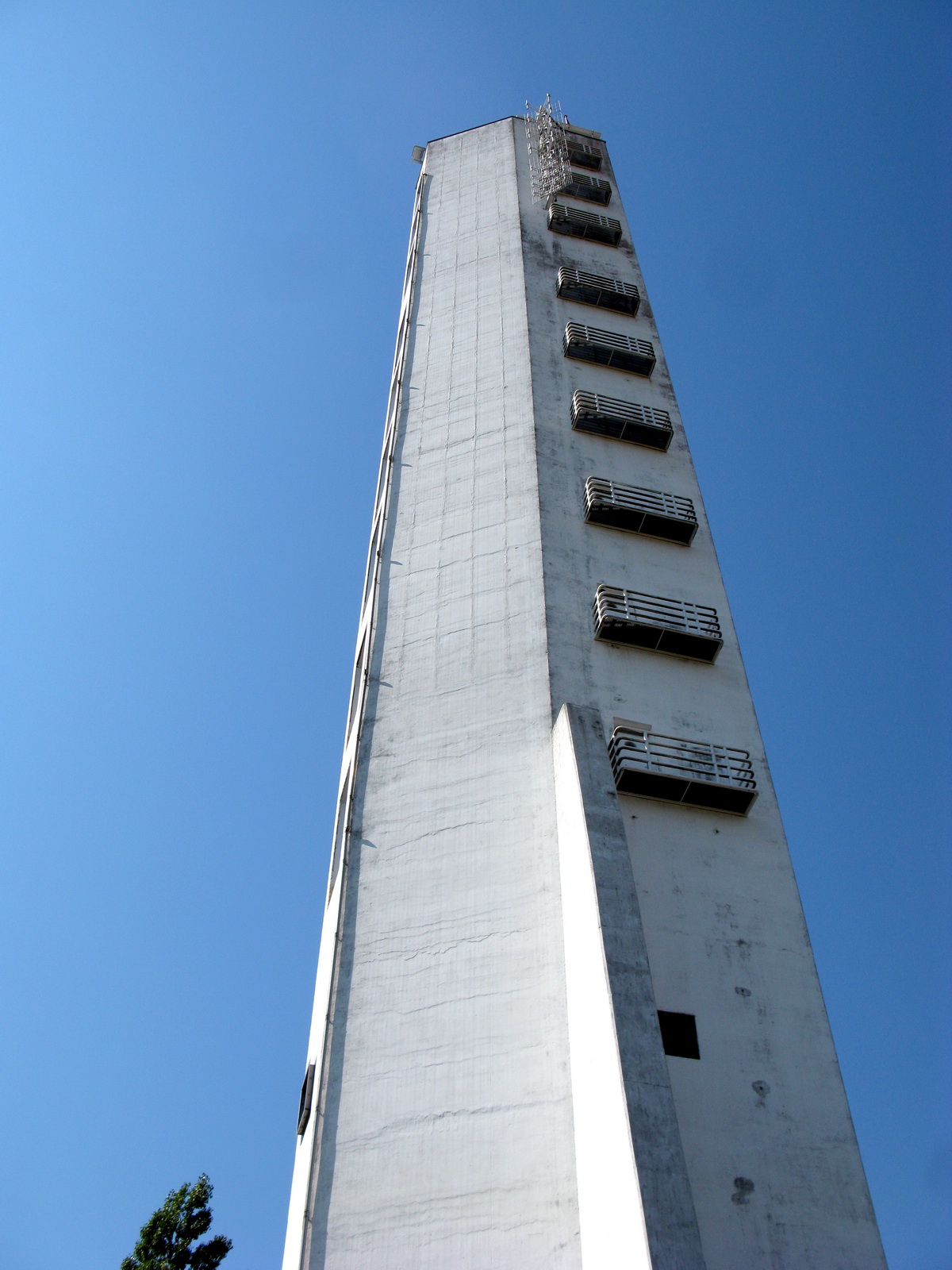 Kurz einmal zurück, wie der Turm ausgesehen hatte: Auf den acht obersten Ebenen waren die Plattformen für die Antennen installiert. 2014 waren diese Plattformen dann abgerissen worden.