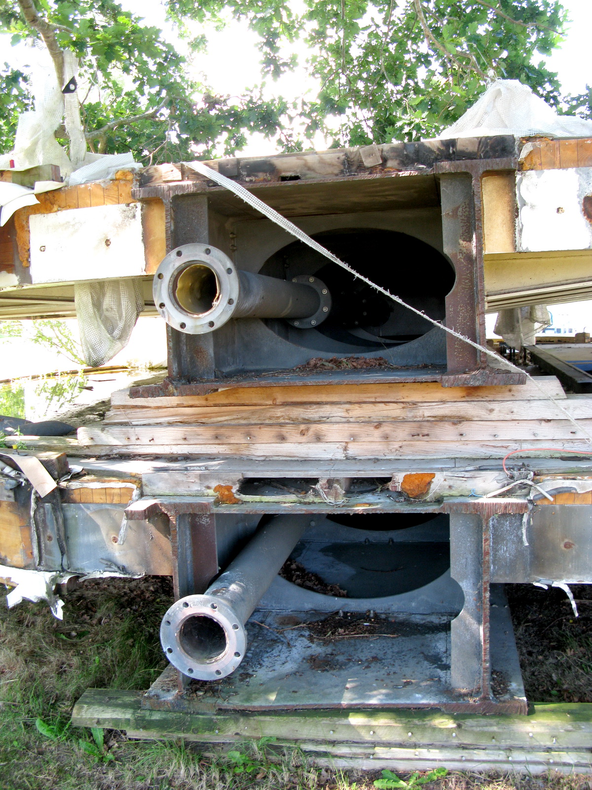 Auf dem Vorplatz liegen noch zwei der ehemaligen Plattformen herum (warum auch immer....) Sie waren mit einem Stahlprofil mit dem Turm verbunden, durch Rohre waren die Kabel etc. geführt worden.