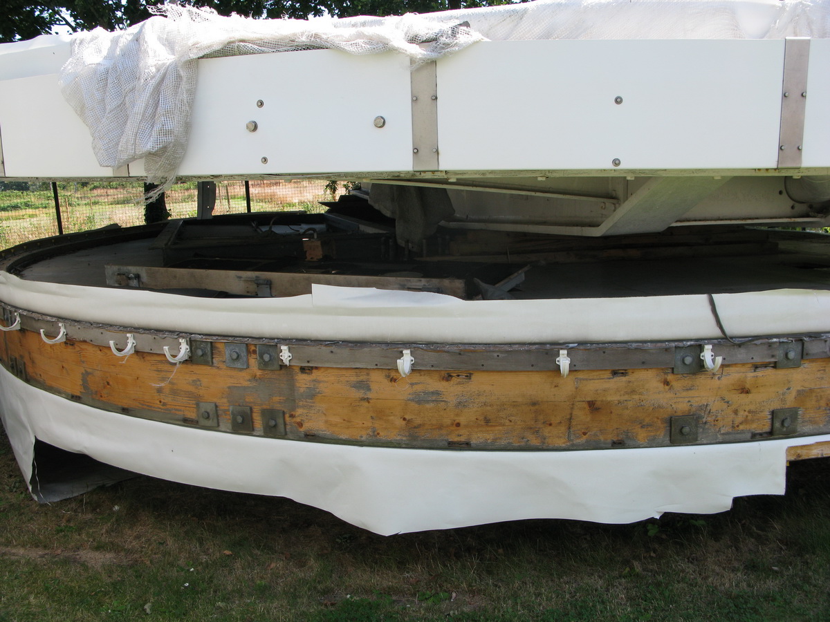 Die Plattformen selbst bestanden offenbar nur aus Holz (??) und nach außen hin war die Technik nur durch eine dicke Folie / Plane geschützt, um die Funkwellen möglichst wenig zu behindern.