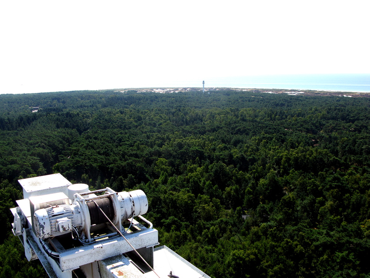 Wenn man es denn endlich nach oben geschafft hat, führt eine kleine Treppe hinauf auf den oberen offenen Bereich des Turms! Leider habe ich davon keine Bilder gemacht, im unteren Bereich der Seilwinde ist es eine ca. brusthohe Mauer. Im oberen Bereich kann man ebenfalls von einem neuen Bretterzaun geschützt in alle Richtungen blicken. Ob es ganz erlaubt ist oder nicht - genau in der Mitte kann man noch auf einen etwas erhöhten Betonsockel klettern und hat bei gutem Wetter wirklich einen tollen Ausblick über die Südspitze! Als ich oben war, war es leider ein kleines bisschen diesig, trotzdem aber ein toller Tag, wie man sieht: