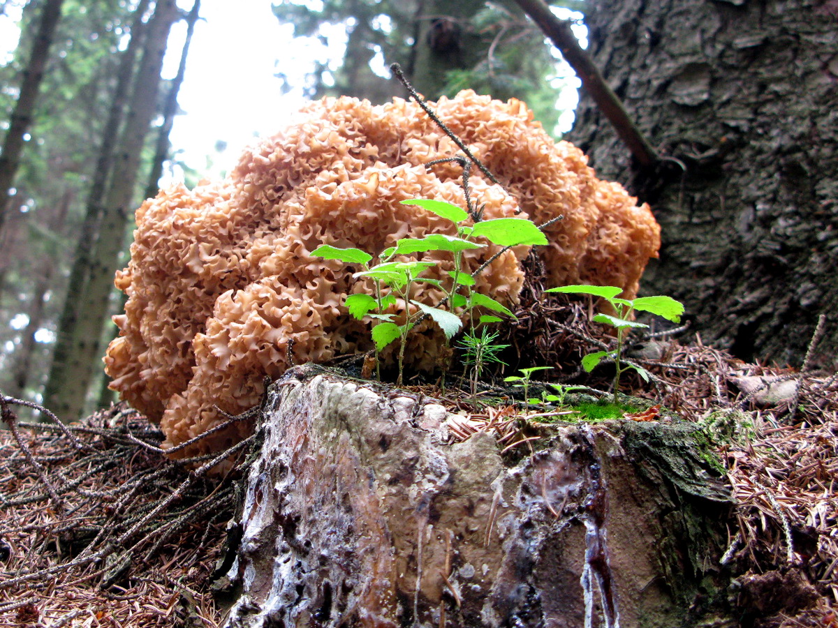 Die Krause Glucke ist ein Pilz,der über viele Jahre seinen Fruchtkörper immer wieder am gleichen Wurzelstock (meist einer alten Kiefer) bildet. Der "Pilz" kann mehrere Kilogramm schwer werden und sieht aus wie eine Art feinblätteriger Badeschwamm. Was auch das Hauptproblem darstellt: Das Saubermachen kann extrem nervig sein. :wink: Ansonsten schmeckt der Pilz einfach in Butter knurpselig gebraten und mit Salz und Pfeffer gewürzt einfach köstlich.