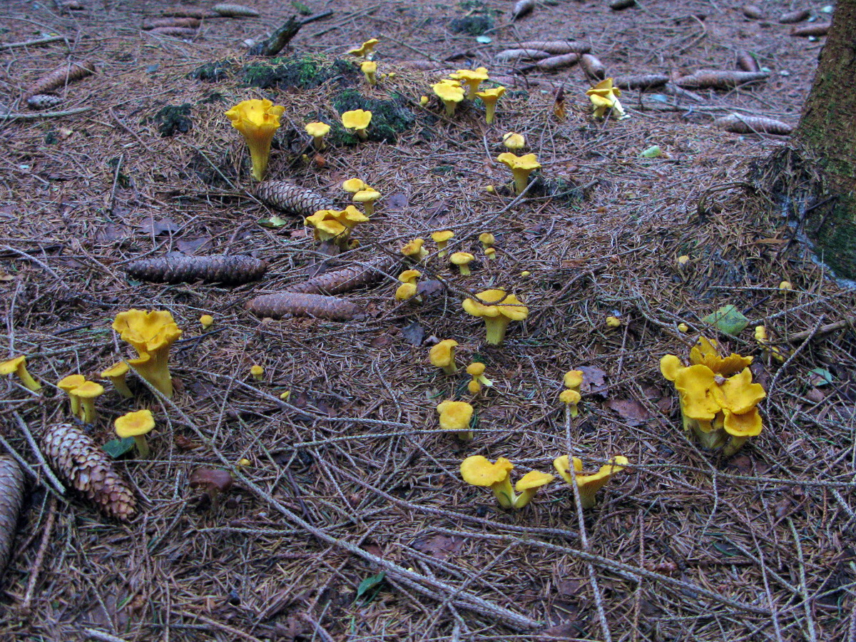 Im letzten Jahr Anfang September gab es nur eine Handvoll mit viel Suchen. Pfifferlinge findet man als sehr schmackhaften Speisepilz aber in den Plantagen fast jedes Jahr auch schon ab Ende Juli, durch die schöne gelbe Farbe und die typische Form als Leistenpilz ist er kaum mit anderen Pilzen zu verwechseln. Im Zweifel einfach mal ein Stückchen roh probieren, er schmeckt eben auch ganz typisch. :D