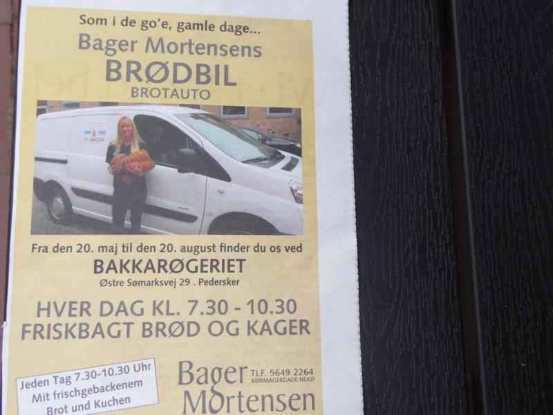 Übersetzung: Der Bäcker aus Nexø, Karsten Mogensen, schickt - nach dem Ende der Bäckerei in Pedersker - seinen Sohn mit einem Verkaufswagen zur Bakkarøgeriet in Østre Sømarken!