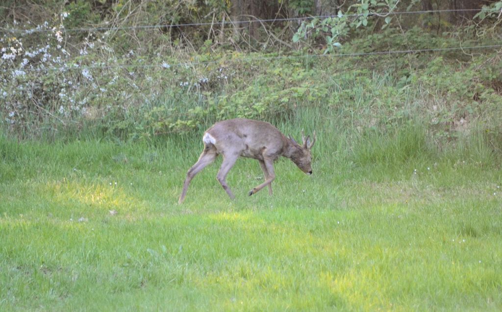 Dafür war mir das Glück am späten Nachmittag noch hold, als es mir gelang eines der Rehe, die ab und zu über den Campingplatz laufen, mit der Kamera einzufangen.