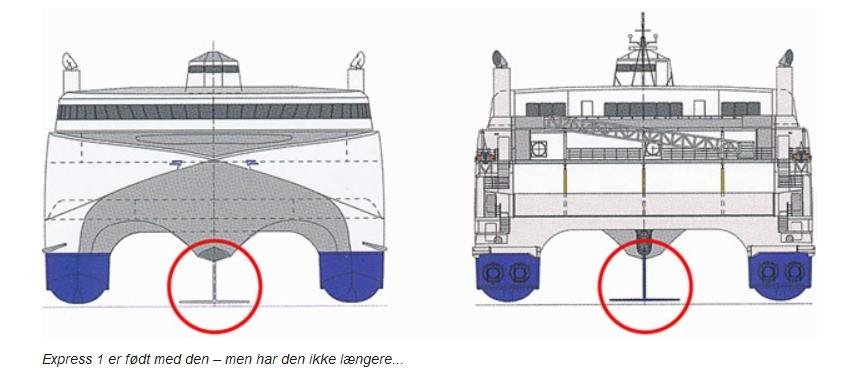 Die Tidende hat weiter herausgefunden, dass die Express 1 ursprünglich mit diesem Stabilisator ausgerüstet war, der jedoch später entfernt wurde.